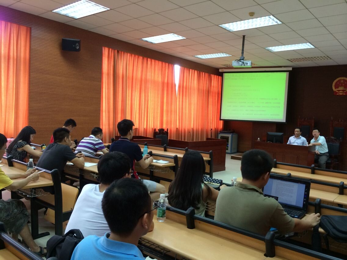 2014年6月23日下午,我校云山学者杨解君教授在南校区实验楼A栋302小模拟法庭主讲题为“当前司法体制改革的宪法解读”的公法前沿讲座。