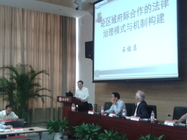2014年7月9日,“国家治理的现代化与软法”国际研讨会在北京大学举行。本次会议由北京大学软法研究中心、北京外国语大学共同主办。第十届全国政协副主席罗豪才教授,国务院法制办公室副主任袁曙宏教授、以及来自德国、加拿大、澳大利亚、全国各高校、研究机构相关研究人员80余人出席会议。我校区域一体化法治研究中心主任石佑启副校长、常务副主任朱最新教授应邀出席。