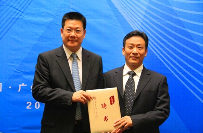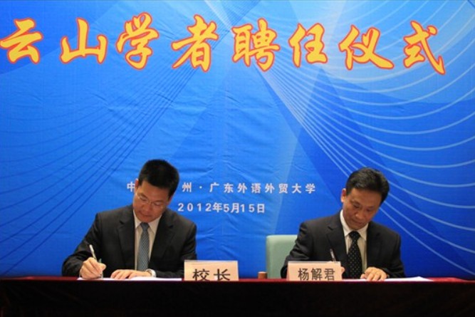 聘任仪式上,许国彬首先代表学校热烈欢迎杨解君加盟我校,祝贺他成为我校首位“云山杰出学者”,并介绍了杨解君的学习和工作经历、研究方向、科研成果等方面的情况。许国彬表示,杨解君受聘为我校首位“云山杰出学者”,这不仅对形成结构合理、可持续发展的高层次人才梯队有着重大的意义,同时将对我校法学学科的发展起到重要的推动作用。随后,仲伟合与杨解君签订“云山杰出学者”聘用合同,并为其颁发了聘书。
