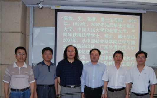 2011年5月24日,华东政法大学教授、博士生导师陈俊,华中科技大学教授、博士生导师李扬应邀莅临我校,并为法律硕士研究生举行“法制前沿若干问题”的讲座,讲座在第六教学楼黄华讲堂举行。我校石佑启副校长、法学院常廷彬、叶昌富、朱最新、宁少媛等老师出席了讲座。
