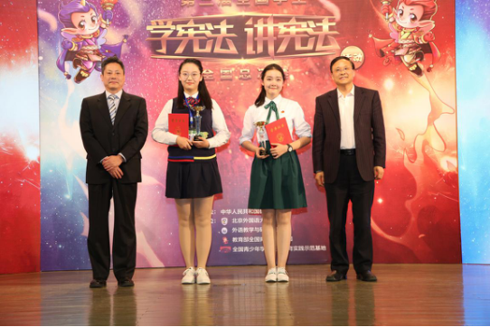 受广东省教育厅委派,由我校立法基地潘高峰副教授、新闻与传播学院全燕教授等作为团队指导老师的广东省代表队赴京参加比赛。我校法学院学生金礼静、陈嘉颖作为广东队选手参加了比赛。广东省代表队选手在总决赛的各项竞赛中都取得了优异成绩,特别是来自广州市第二中学的范晶同学获得演讲比赛初中组全国亚军和最佳风采奖,这是广东省代表队参加全国学生“学宪法讲宪法”全国总决赛以来的最好成绩。来自汕头市龙湖区金珠小学的李佳霖同学、广州市执信中学的张熹同学分获演讲比赛小学组、高中组二等奖;我校金礼静同学获得演讲比赛高校组三等奖。李佳霖、范晶、张熹三位同学组成的团队获得中小学生知识竞赛二等奖。由我校金礼静、陈嘉颖、暨南大学的王楚欣、五邑大学陈国健四名同学组成团队获得大学生辩论赛三等奖。来自汕头市华侨中学的杨菁同学通过网络海选,晋级参加了全国总决赛,并取得演讲比赛高中组二等奖。我校潘高峰、全燕老师获得获知识竞赛优秀指导老师二等奖,潘高峰、林茂辉老师获得演讲比赛优秀指导老师三等奖。