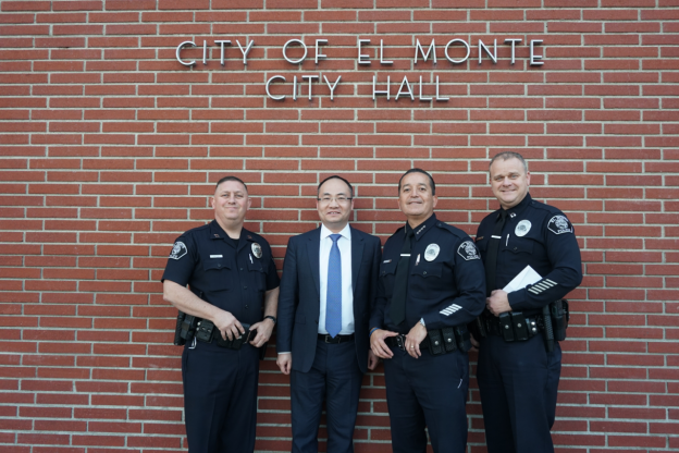 交流结束,应El Monte 警察局局长雷诺萨邀请,周新副教授参观了该局的办公环境、执法装备及报警服务平台,就双方在智慧警务方面的合作进行探讨。