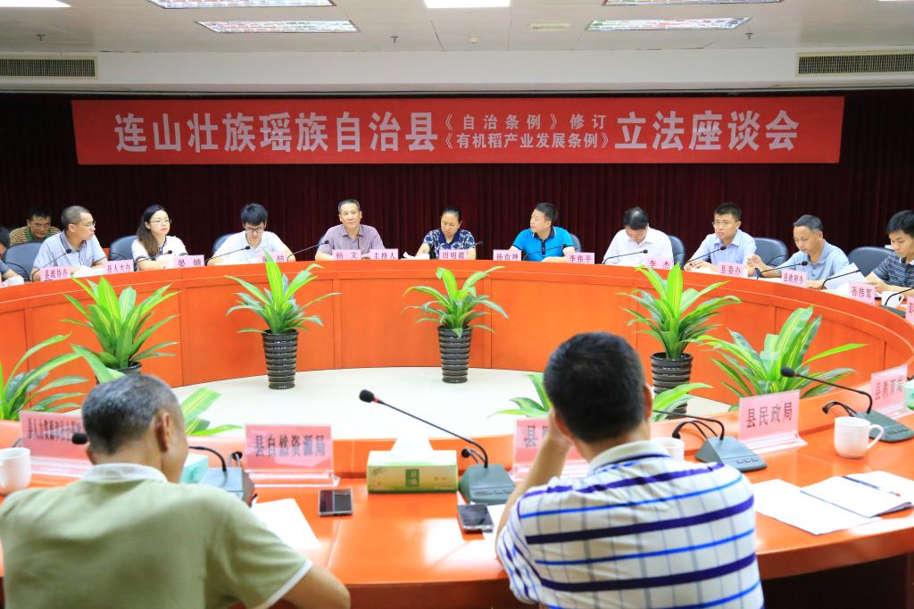 受连山壮族瑶族自治县人大常委会主任田明霞一行邀请,基地杨治坤副主任、黄喆博士、李杰博士和晏婧老师于6月5日至6日赴连山,进行《连山壮族瑶族自治县有机稻产业发展条例 》《连山壮族瑶族自治县自治条例(修订)》(草案专家建议稿)起草项目调研工作。