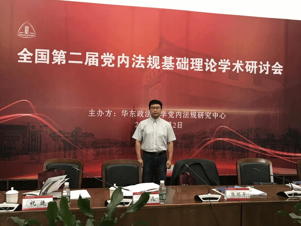 2019年11月2日,全国第二届党内法规基础理论学术研讨会在华东政法大学长宁校区举行。来自上海市委办公厅、市纪委、市委组织部、市委宣传部、市委政法委、市教委、市司法局、市法学会八家实务机关单位的领导专家及华东政法大学党委书记郭为禄、副校长张明军出席会议。来自中共中央党校、中国社会科学院、中国政法大学、武汉大学、山东大学、华东政法大学、西北政法大学、广东外语外贸大学、华南师范大学、深圳大学、湘潭大学等高校的专家学者参加会议。基地谢宇博士参加了本次会议并作主题汇报。