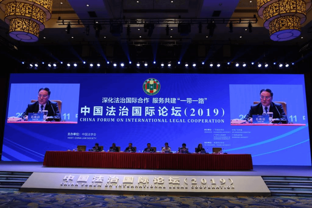 11月10日,中国法治国际论坛(2019)在广州开幕。本次论坛主题是“深化法治国际合作 服务共建‘一带一路’”,由中国法学会主办,广东省法学会、中共广州市委、广州市人民政府和广州市法学会承办,珠海市法学会协办。中共中央政治局委员、中国法学会会长王晨出席开幕式,宣读习近平主席贺信并发表主旨演讲。
