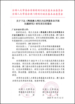 u 中心研究人员获教育部2020年哲学社会科学重大课题攻关项目、全国人大常委会香港基本法委员会、澳门基本法委员会2020年研究项目(2020年度教育部人文社会科学研究特别委托项目)、2020年度广州市全面依法治市项目立项