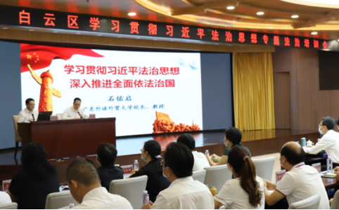 9月16日,白云区举办学习贯彻习近平法治思想专题法治培训会,邀请广东外语外贸大学党委副书记、校长石佑启作专题学习辅导报告。区委理论学习中心组成员参加区主会场学习。报告会以电视电话会议的形式开至各镇街。