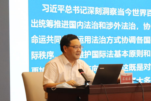 报告会上,石佑启以“学习贯彻习近平法治思想,深入推进全面依法治国”为主题,从习近平法治思想的重大意义、核心要义、内在逻辑、实践要求等方面,深刻阐述了习近平法治思想的时代背景,全面系统、深入浅出地解读了习近平法治思想的核心要义和丰富内涵。