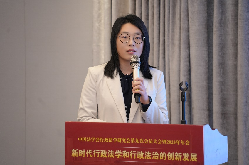 尹培培主要针对崔梦豪的报告进行评议。尹培培首先从没收违法所得制度谈起,认为报告对民事责任优先的讨论是一个新问题,具有很强的实践意义,当前的没收违法所得制度的实施细则欠缺,究竟是否需要扣除成本后适用该项制度存在巨大争议。其次,在理论层面,报告将对公私法的责任竞合的探讨从前端的诉权选择延伸到了后端执行方面。最后,尹培培对报告提出了建议。她认为,报告对比例原则的探讨有些浅尝辄止,需要对其在执法领域运用的具体方式做进一步展开。尹培培还对覃慧的报告发表了看法。她认为,行政机关负责人出庭制度在客观上促进了矛盾纠纷的实质性化解。