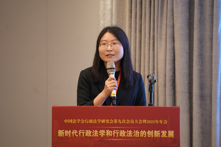 第三单元由中国法学会行政法学研究会常务理事、河海大学法学院教授邢鸿飞和中国法学会行政法学研究会常务理事兼副秘书长、北京师范大学法务办公室主任、教授张红担任主持人。宁波大学法学院副教授金晓伟,河北大学法学院副教授李芹,广东外语外贸大学法学院教授杨治坤,华东政法大学中国法治战略研究院助理研究员崔梦豪,华南师范大学法学院特聘研究员覃慧5位专家学者进行专题报告,另由暨南大学法学院教授刘文静,兰州大学法学院教授邓小兵,浙江社科院智库建设和舆情研究中心主任、研究员唐明良,南京师范大学法学院副教授尹培培,淮阴师范学院法学院副教授林华东5位专家学者进行评议。
