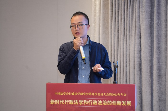 杨治坤作题为《行政处罚体系化中的按日连续处罚制度检视与优化》的主题报告。杨治坤认为,依托行政处罚规范体系化考量,将按日连续处罚定性为行政处罚更为妥当,使之回归行政处罚法体系。根据行政处罚基本原理对按日连续处罚作出理论澄清,解决其与比例原则、“一事不再罚款”等行政处罚基本原理之间的抵牾,有助于保障按日连续处罚的制度实践顺利开展。他指出,在制度功能层面,按日连续处罚制度功能逐步从惩罚转向惩罚与威慑并重;在实践实效层面,实践应用中存在式微趋势,适用空间正被压缩,也存在着被其他行政处罚方式替代的可能性。基于行政处罚规范一体化要求,有必要从制度设置层面对按日连续处罚制度在坚守的基础上进行优化:第一,继续保留按日连续处罚的制度基本框架;第二,在保留按日连续处罚制度的基础上,完善其适用的裁量基准;第三,及时将按日连续处罚吸纳进《行政处罚法》,并与未来的行政法体系化保持协调和有机统一。