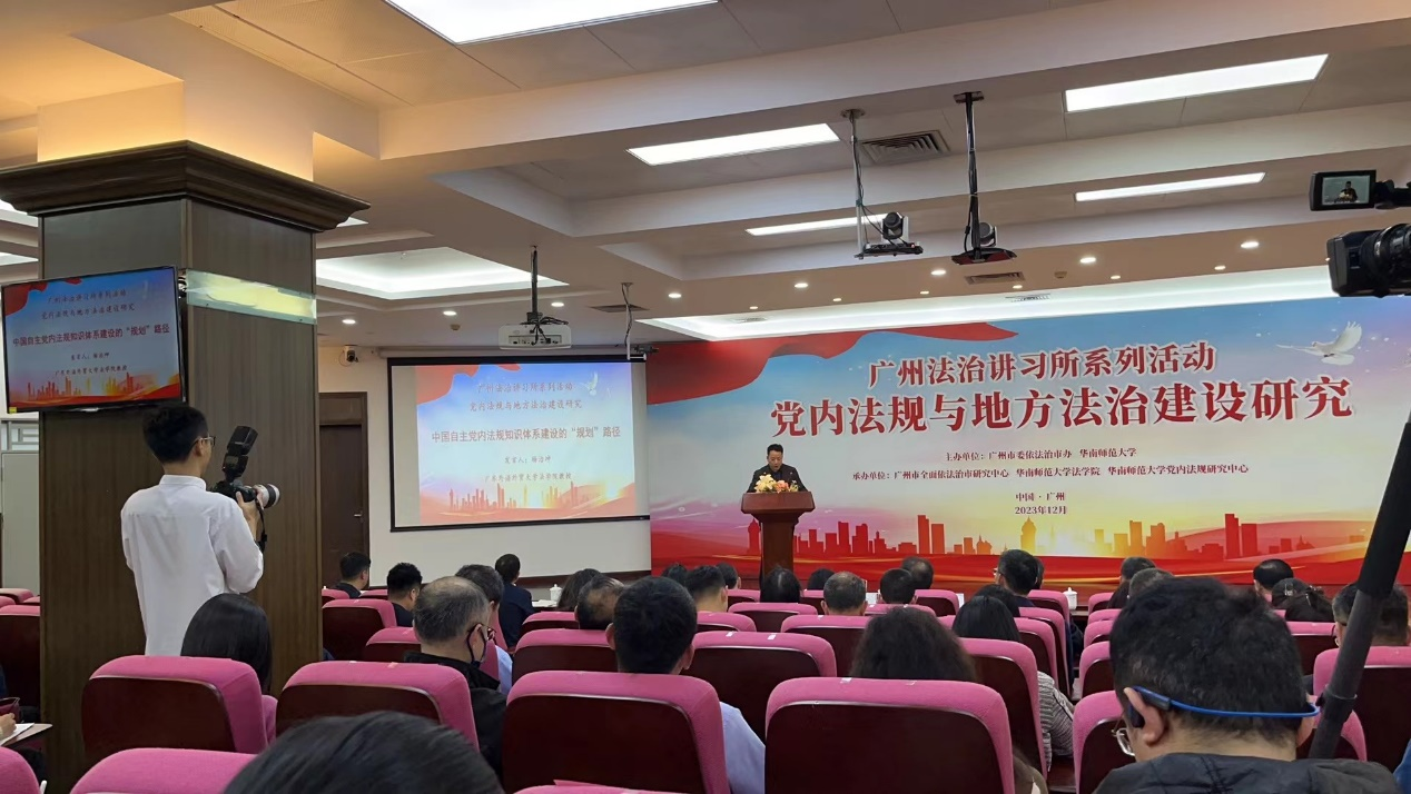 为了加强习近平法治思想的学习研究与宣传阐释,12月7日,广州市委依法治市办与华南师范大学联合举办广州法治讲习所研讨活动。本次活动以“党内法规与地方法治建设研究”为主题,邀请武汉大学法学院教授秦前红、华南理工大学教授吴家清、暨南大学教授高轩、广东外语外贸大学教授杨治坤、华南师范大学副教授廖丹等专家,围绕党内法规的定性定位、功能发挥、完善路径、知识体系建设,以及发挥党内法规和地方法治同频共振效用等问题进行深入研讨。中心李福林博士一并参会学习。