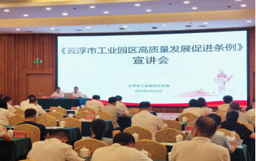 4月15日下午,《云浮市工业园区高质量发展促进条例》宣讲会在云浮市迎宾馆举办。宣讲会由云浮市工业和信息化局副局长余淇兴主持,市人大常委会法工委主任简学钦就接下来如何做好《条例》宣传贯彻工作做讲话,各县(市、区)政府分管领导、市推动制造业高质量发展工作领导小组成员单位负责同志、各县(市、区)有关部门负责同志及企业代表等约100人参加。会议邀请了我院副教授余彦博士对《条例》进行主题宣讲解读。