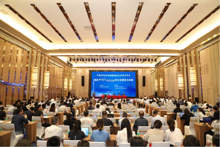 11月16至17日,中国法学会立法学研究会2024年学术年会在广州举行。本次会议的主题为“推进中国式现代化的立法理论与实践”,紧扣全面依法治国的伟大实践,总结交流立法理论研究和立法工作实践,推动新时代立法理论研究高质量发展,为完善以宪法为核心的中国特色社会主义法律体系提供理论支撑。年会由广东外语外贸大学法学院、涉外法治研究院承办,全国各地400余位立法学研究者与立法实务工作者参会。