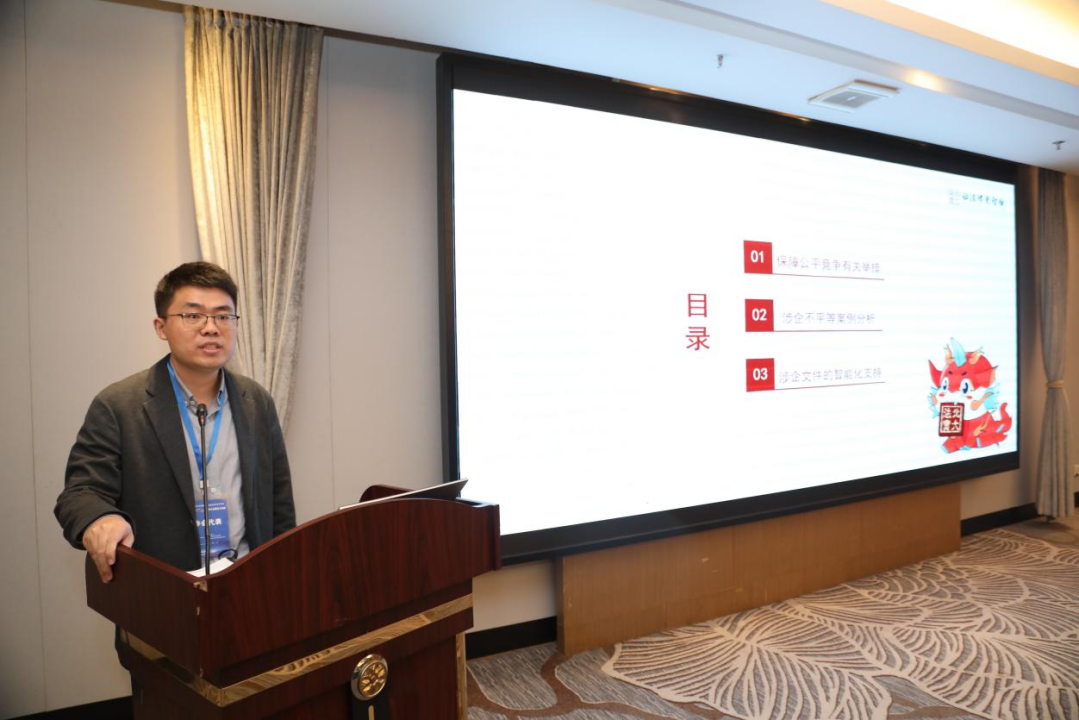 “北大法宝”立法运营副总监武崇松作了题为“全国统一大市场背景下法规政策文件涉企不平等案例分析”的发言。以222件涉企不平等法规政策文件为研究对象,从案例类型、级别、行业、地域及类案情况等多个维度进行研究分析,揭示涉企不平等法规政策文件存在的现象和问题,如在违反审查标准的类型上,妨碍市场准入和退出的问题最突出,又如在行政级别上,市级和县级文件数量最多,而法规规章很少涉及等。他提出,应当从信息化和智能化建设两个角度搭建公平竞争审查法规政策文件案例查询平台和探索涉企不平等文件审查智能化辅助系统,为涉企文件提供智能化支持。他还分享了北大法宝在文审系统方面的信息化、智能化探索。
