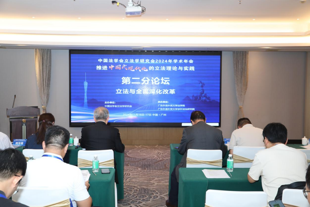 11月16日下午,中国法学会立法学研究会2024年年会第二分论坛在广外国际学术交流中心(广州逸林假日酒店)行实致远厅举行,分论坛主题为“立法与全面深化改革”。