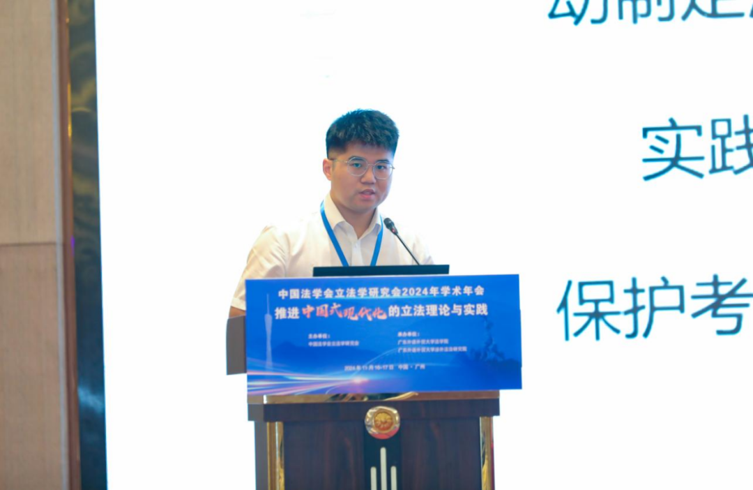 东南大学法学院博士生王敬文作了题为“论我国法治先行地区授权立法制度再完善——以新修订《立法法》84 条为例”的发言,认为,针对法治先行地区授权立法制度在实施中产生的授权内容缺乏明确性;不同地区的授权立法未体现出必要的地方差异、缺少区分度;授权立法的创新性不足等问题,建议完善《立法法》,对法治先行地区的授权制度进行统一以增加对未来发展变化的适应性,并通过授权决定等形式对不同地区作区分性授权,同时,被授权的地方应积极开展变通性与创新性立法,在授权范围内通过先行先试触及法律保留事项、合理突破上位法的规定。