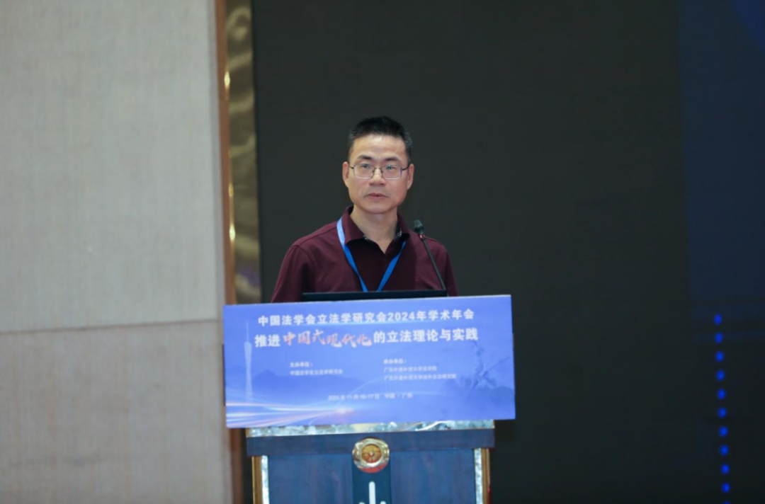 广东外语外贸大学广东法治研究院副院长、教授杨治坤进行评议。朱力宇教授关注澳门立法与内地立法的双向互动,研究视角具有很强的创新性。温泽彬教授的论文结构严谨,探讨了区域协同立法如何从中央到地方多维度实现合宪性控制。朱孔武教授关注低空经济这种新的经济形态对现有秩序带来的挑战,作出了法治回应,并认为应当将法治保障和法治规制并重。粟丹副教授的文章逻辑需要进一步调整,“立法后评估——立法精细化——立法质量标准”的逻辑并不统一,立法评估和立法精细化是立法质量的控制手段或标准要求。