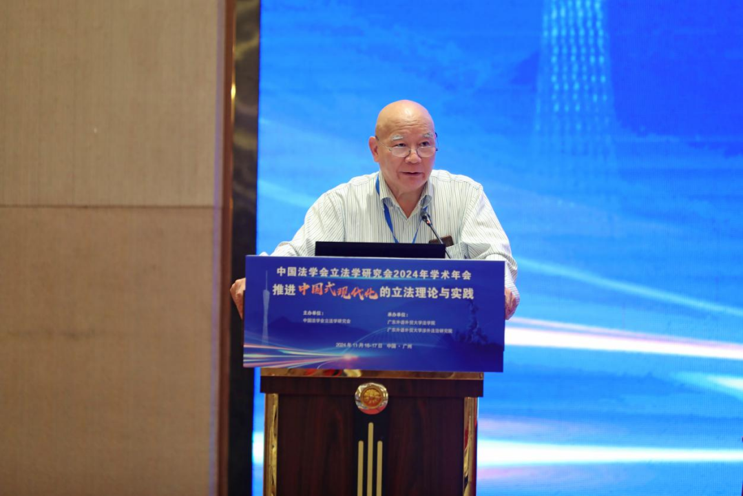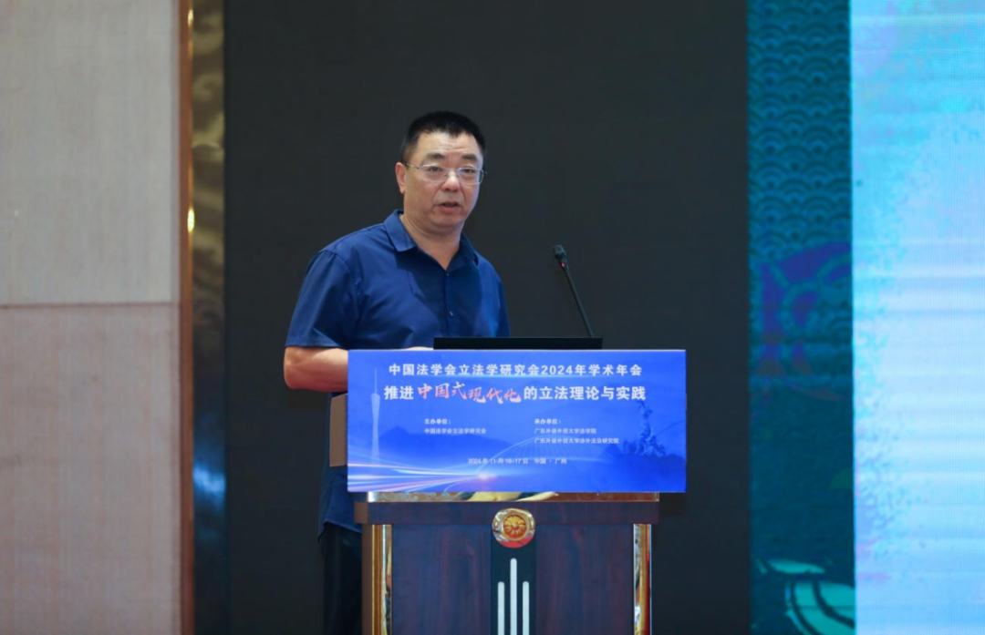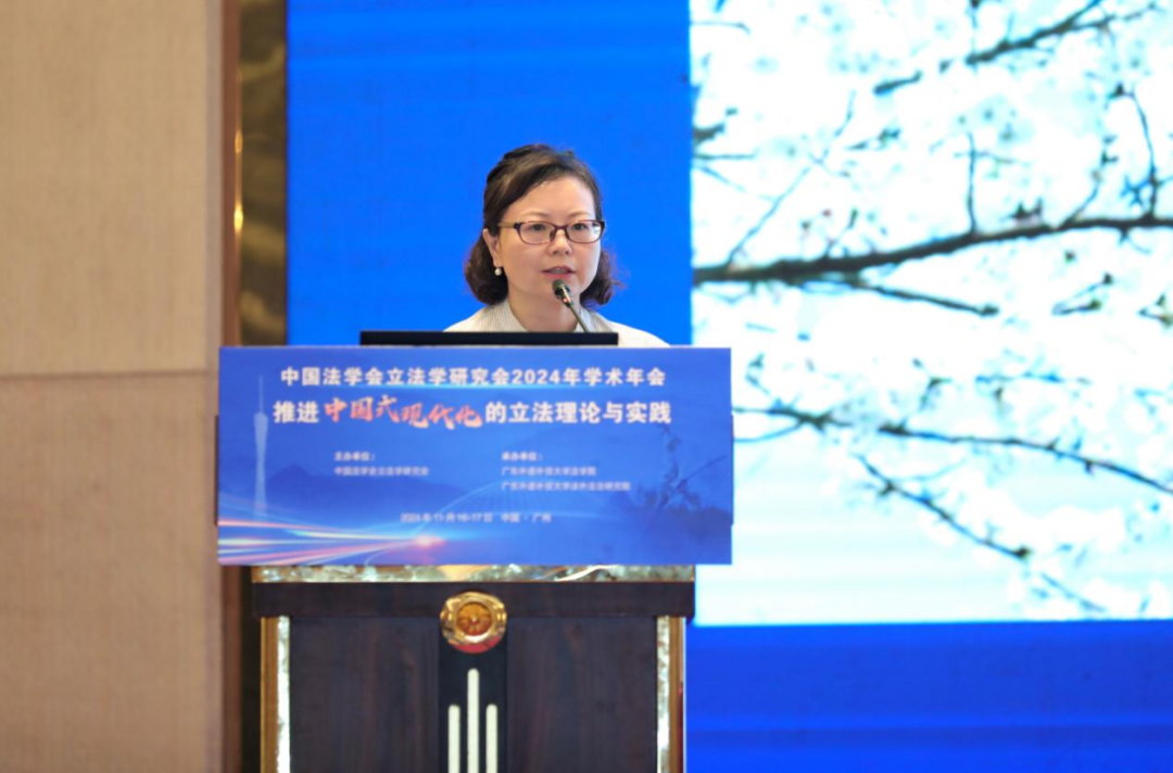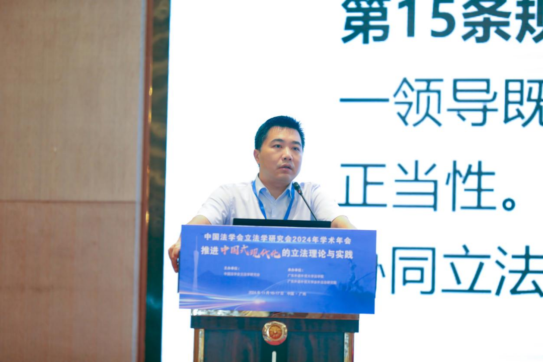 11月17日上午,中国法学会立法学研究会2024年学术年会第四分论坛在广州国际学术交流中心(逸林假日酒店)国际会议厅(一)举行,分论坛主题为“区域法治与地方立法”。山东省人大常委会副秘书长姚潜迅和广东外语外贸大学地方立法基地主任、教授朱最新担任主持人。