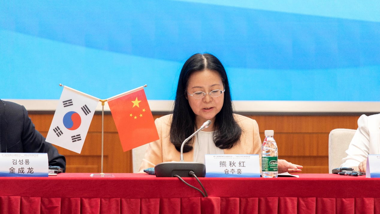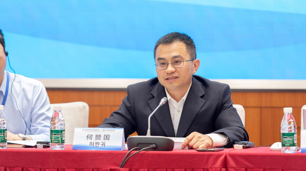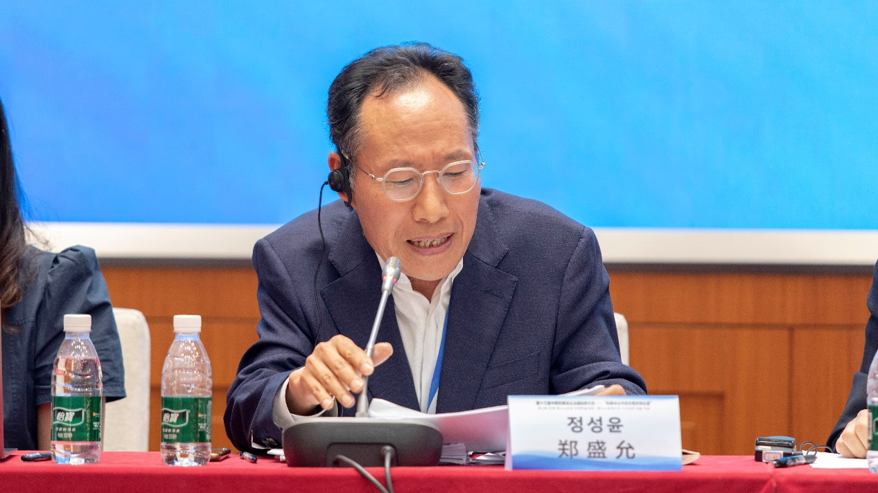 金成龙会长在闭幕式上对本次研讨会的成功举办表示高度肯定,并感谢与会各方的积极参与。他向来自中韩两国的所有专家学者,感谢他们在主持、做报告、在讨论当中所做出的努力;感谢广外的领导以及工作者,为大会做了非常充足的准备和细致的安排;也要感谢由于个人原因已经提交了论文,但是今天未能到现场的各位专家学者!他表示,资料集上的论文都是非常珍贵的资料,希望我们会后把这个资料集进一步完善,作为珍贵的资料进行保存。最后他提到,通过今天的会议可以进行一个反思,对于我们韩国自己的发展或者是对于整个制度的发展都有很好的借鉴,希望在接下来的研究当中能够找到改善、解决这些问题很好的平衡点。