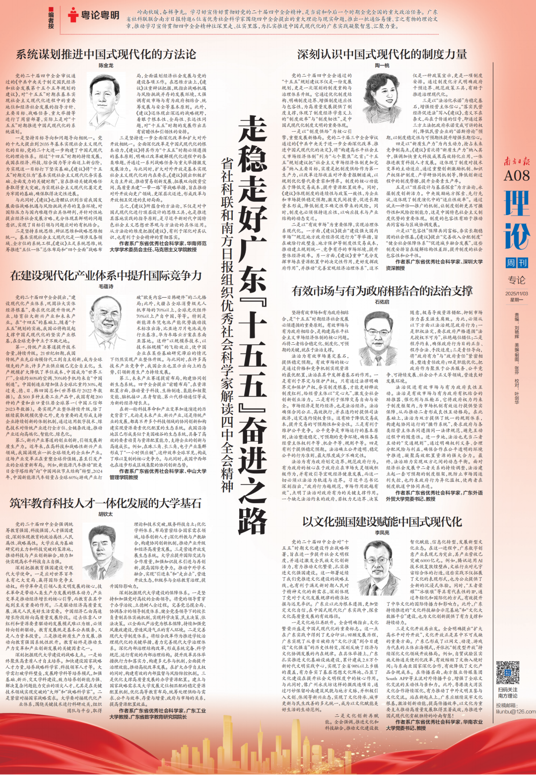 岭南秋暖,奋楫争先。学习好宣传好贯彻好党的二十届四中全会精神,是当前和今后一个时期全党全国的重大政治任务。近期,广东省社科联联合南方日报特邀6位广东省优秀社会科学家围绕党的二十届四中全会提出的重大理论与现实命题,推出一批通俗易懂、言之有物的理论文章,推动学习宣传贯彻党的二十届四中全会精神往深里走、往实里落,为扎实推进中国式现代化的广东实践凝聚智慧、汇聚力量。广东省优秀社会科学家、广东外语外贸大学党委书记石佑启教授应邀以“有效市场与有为政府相结合的法治支撑”为题参与解读党的二十届四中全会精神。